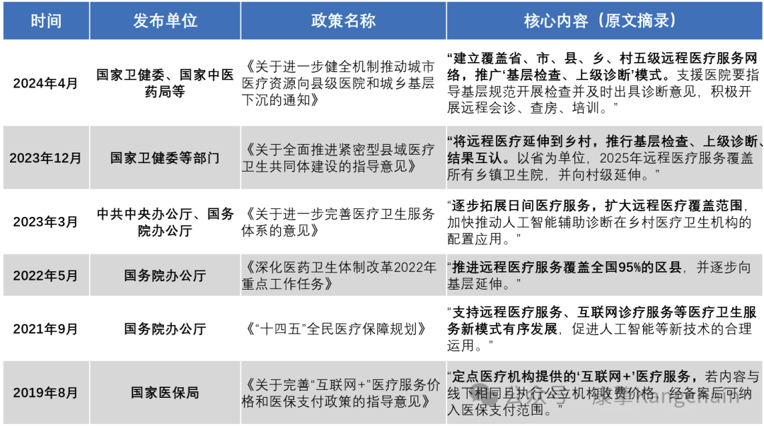 《关于全面推进紧密型县域医共体建设的指导意见》则明确提出2025年前实现远程医疗覆盖所有乡镇卫生院,并逐步延伸至村级。