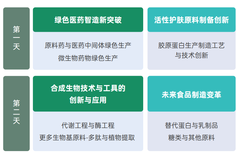 本次大会亮点纷呈,分设绿色医药智造/护活性肤原料/未来食品/工具与技术四大平行会场,共计邀请40余位演讲嘉宾,聚焦前沿技术与产业化深度融合,以加速新质生产力培育为目标,全力推动工艺制造革新,力求为生物经济的蓬勃发展注入强大动力!