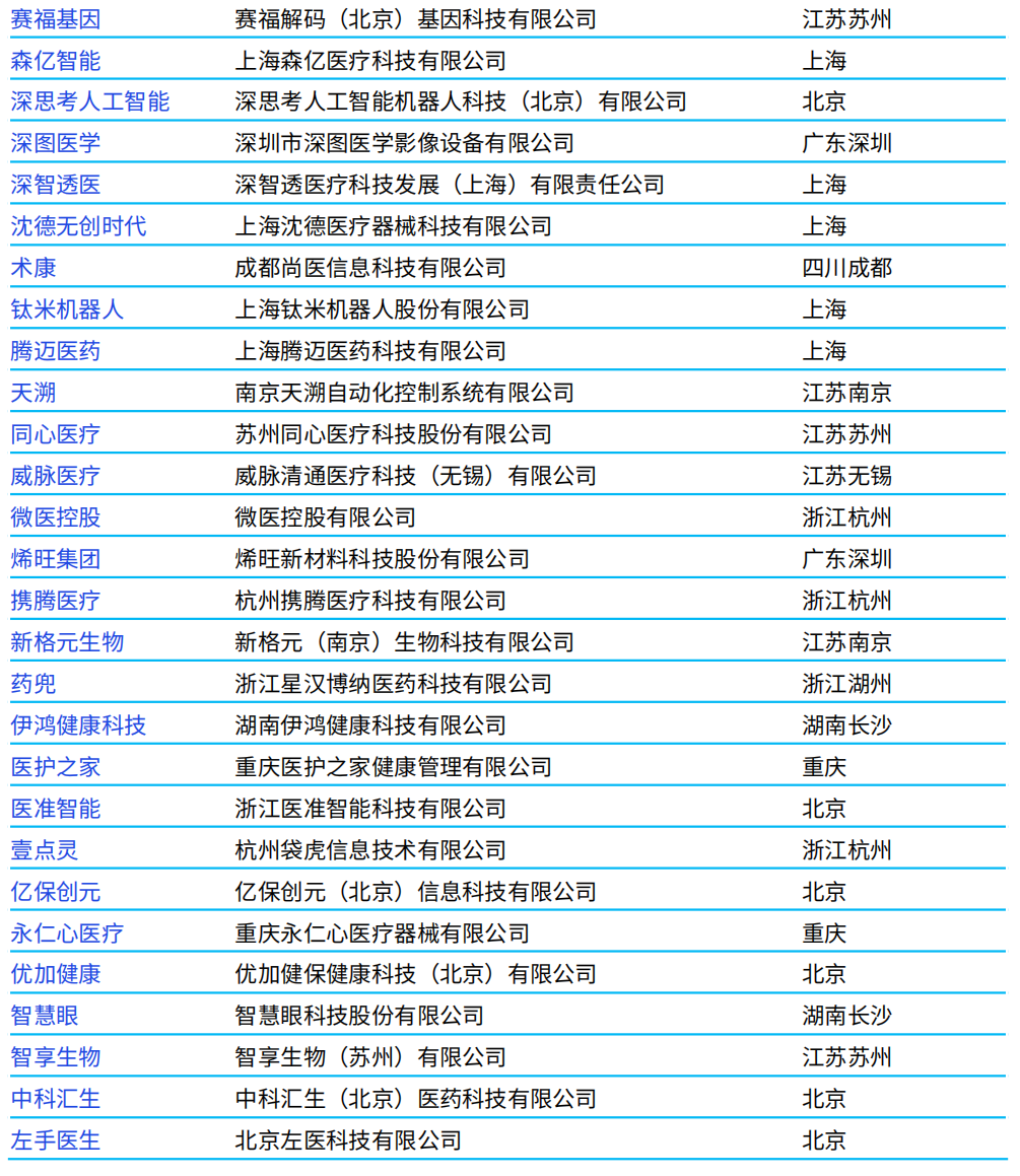 *名单按照企业简称首字母顺序排序,排名不分先后。
