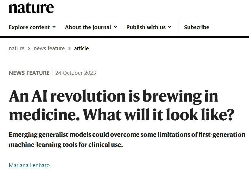 10 月 24 日,《Nature》发布了一篇题为《An AI revolution is brewing in medicine. What will it look like?》的新闻专稿。